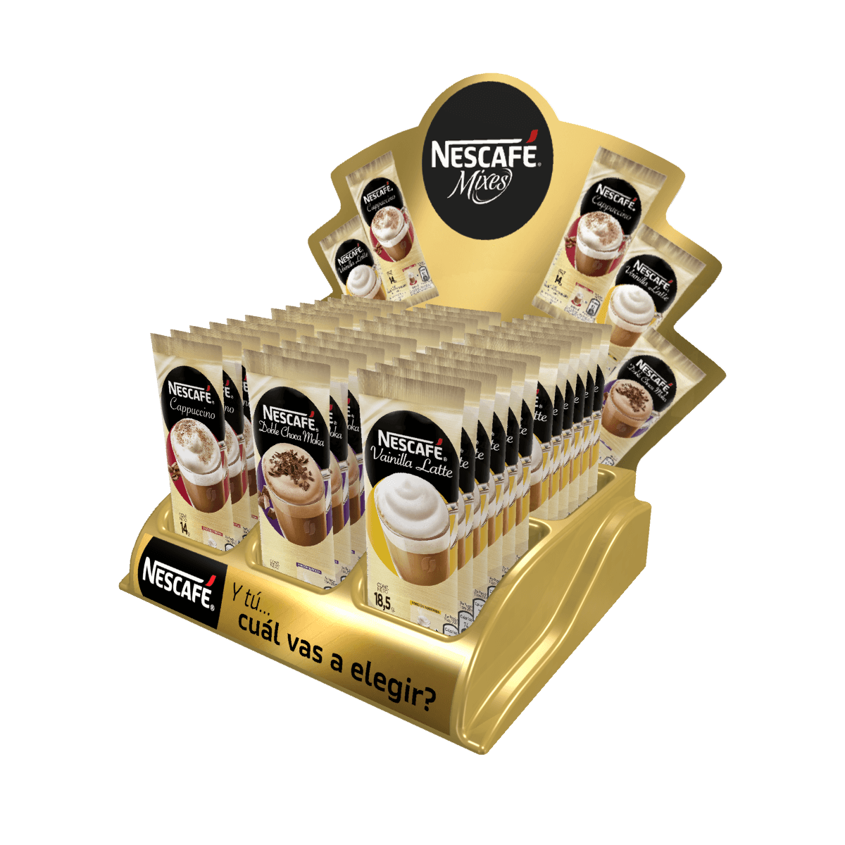 Exhibidor de counter con espacio para colocar producto, con elementos termoformado y planos para resaltar imagen de la marca.